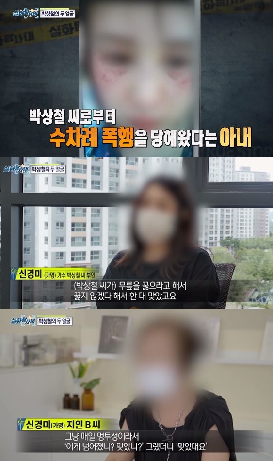 또한 B씨는 박상철에게 수차례 폭행을 당한 사실을 주장했다. B씨의 지인은 평소 멍으로 뒤덮여 있는 B씨의 얼굴을 자주 봤다고 주장했다. B씨와 박상철이 함께 살던 아파트 주민 역시 둘의 부부싸움으로 인한 고성을 자주 들었다고 전했다. B씨는 박상철의 계속 되는 폭언과 폭행에 못이긴 B씨는 자녀 C양과 함께 작년 7월 집을 나온 상태임을 밝혔다.