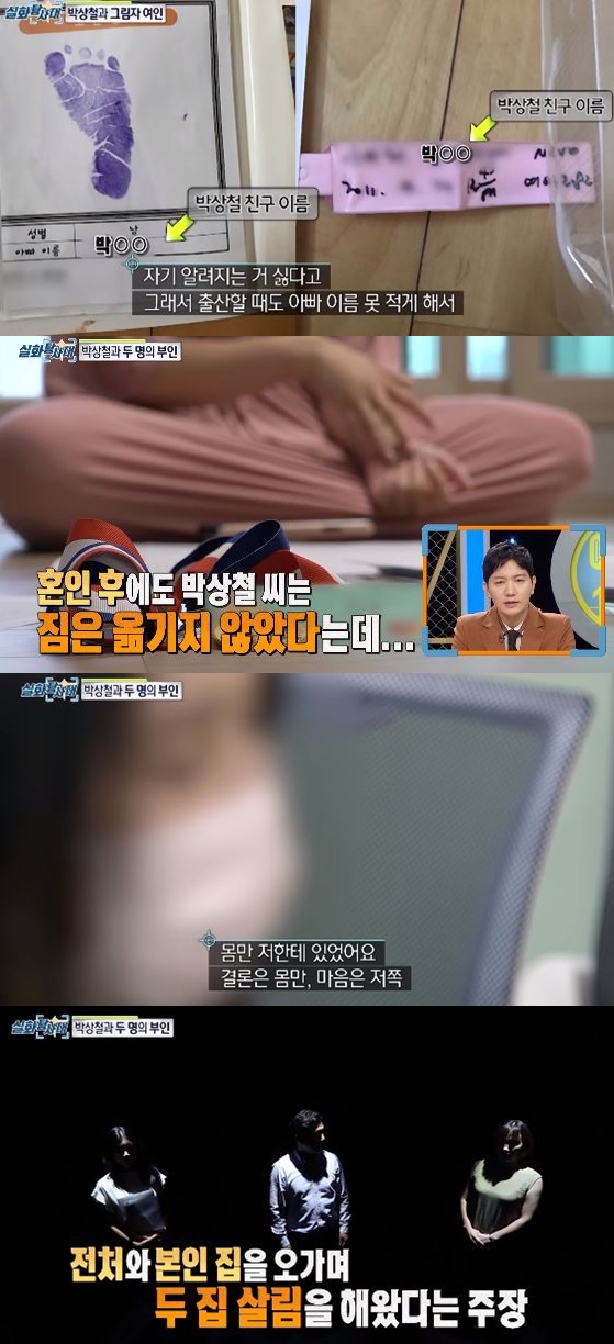 하지만 B씨는 혼인신고 후에도 박상철이 전처와 두 집 살림을 했다고 주장했다. 또한 전 부인 A씨가 직접 B씨에게 자신도 오가는 것을 허락했다는 연락을 하기도 했다. 화가 난 B씨는 전 부인 A씨 집 현관 앞에 주민등록등본과 함께 현재 박상철의 부인이 누군지 알리는 게시물을 붙이며 두 집 살림을 멈춰달라고 요구하기도 했다.