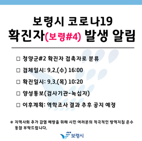 충남 보령시에서 지역내 3, 4번째 코로나19 확진자의 동선을 공개했다.