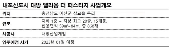 ■ ‘내포신도시 대방 엘리움 더 퍼스티지’ 9월 중 첫 선