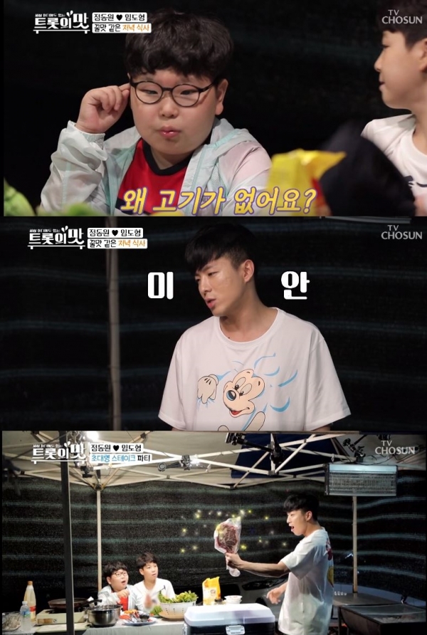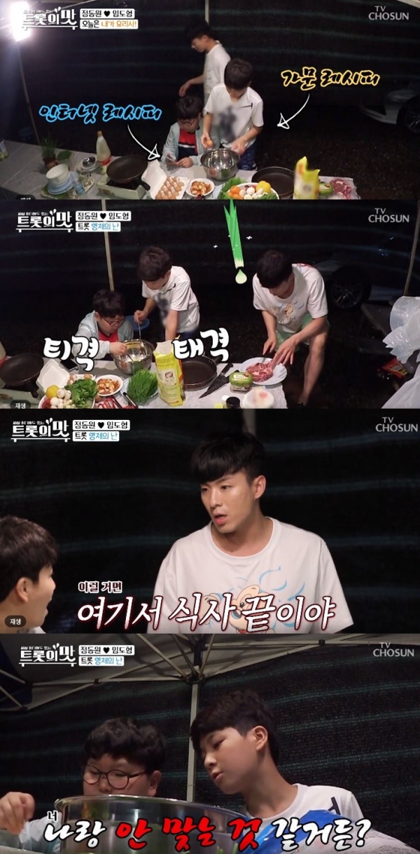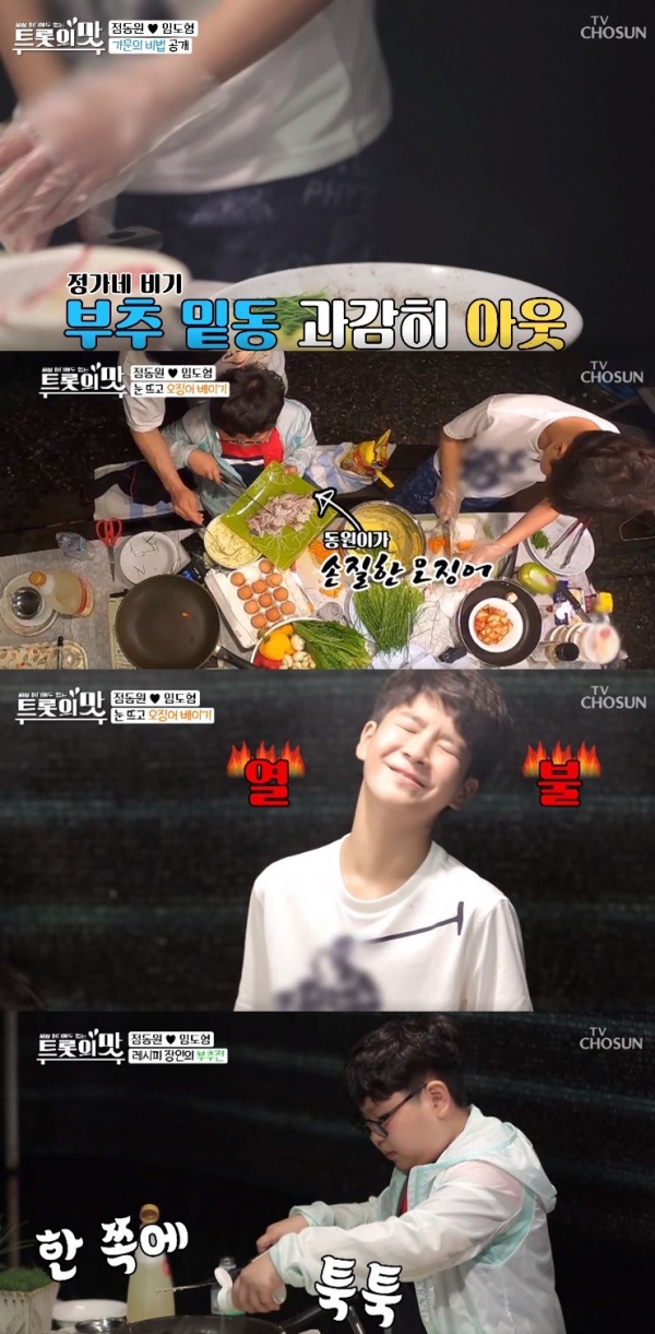지난 8일 TV CHOSUN ‘아내의 맛’에서는 ‘트롯의 맛’으로 정동원,임도형,나태주는 여름 태주학교 2탄으로 시청자들을 찾았다. 물놀이를 신나게 끝낸 셋은 마침 비가 내려 직접 부침개 만들기에 나섰다.