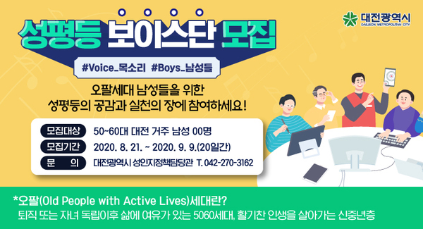 이와 함께 성평등에 대한 남성의 관심과 역할을 제고하고 구조적인 성역할 고정관념에서 벗어나 다양한 계층의 의견수렴으로 소통과 공감의 성평등 문화를 확산하기 위해 성평등 보이스단을 모집·운영할 계획이다.