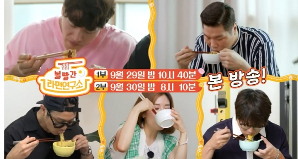 〈볼빨간 라면 연구소〉는 9월 29일(화) 밤 10시 40분에 1부가 방송되고, 9월30일 (수) 저녁 8시 10분에는 2부가 방송된다.
