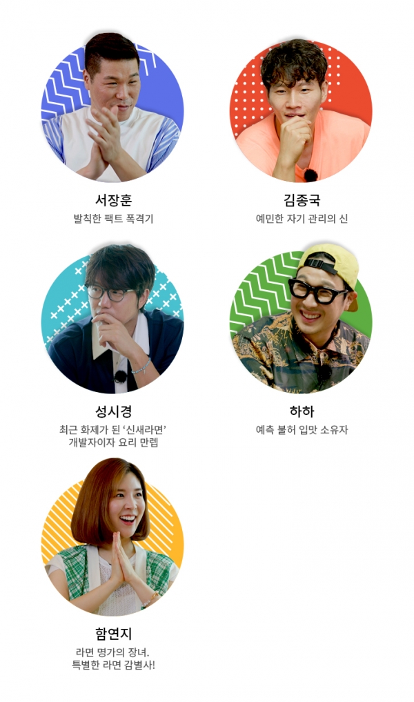 또 다른 MC는 김종국이다. 평소 자기 관리에 있어서 예민한 김종국은 먹는 것에 대하여 굉장히 까다롭다. 까다로운 입맛답게 라면도 평소에 즐겨먹지 않는다고 한다. 이러한 김종국의 입맛을 만족하는 라면이 있을지 궁금하다.