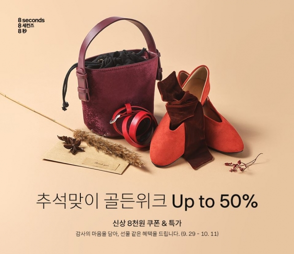 에잇세컨즈가 추석맞이 골드위크 할인 이벤트를 시작했다.