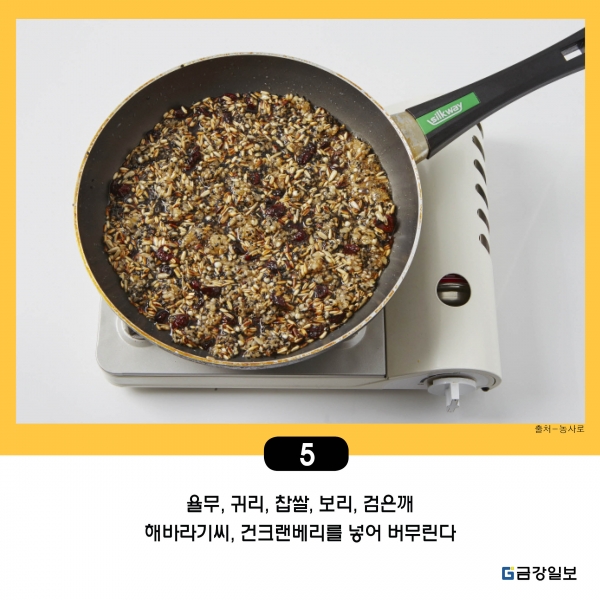 5. 율무, 귀리, 찹쌀, 보리, 검은깨, 해바라기씨, 건크랜베리를 넣어 버무린다.