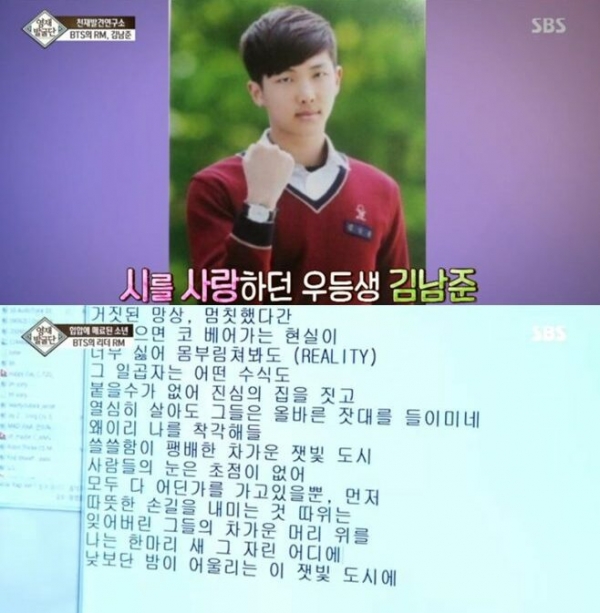 RM은 이렇듯 어린 시절부터 풍부한 감수성과 음악적 재능, 노력하는 재능을 갖췄다. 그런데 그가 가진 재능은 이 뿐만 아니다. 그는 학창시절 치룬 IQ 테스트에서 IQ148이라는 결과를 받은 바로 유명하다. 또한 그는 미국 드라마 ‘프렌즈’로 영어를 독학하여 중학생 때 치른 토익을 850점을 받았다. 이 결과는 당시 전국 상위 1.3%의 수치이다.