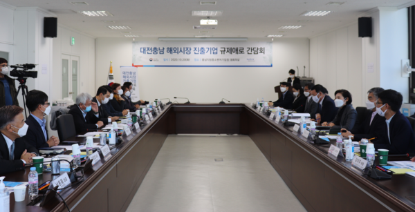 지난 7월 전주·부산, 지난 13일 인천에 이어 코트라(KOTRA)와 공동으로 개최한 이번 간담회는 충남지방중기청, 대전충남코트라(KOTRA)지원단과 천안분소, 대전·충청 소재 수출기업 11개사가 참석해 수출 현장의 애로 사항과 개선 방안을 논의했다.