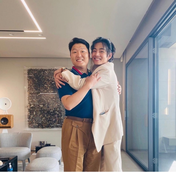 해당 사진을 본 네티즌들은 "월드스타들의 만남인가", "싸이랑 뷔랑 무슨사이야", "뷔 잘생겼어" 등의 다양한 반응을 보였다.