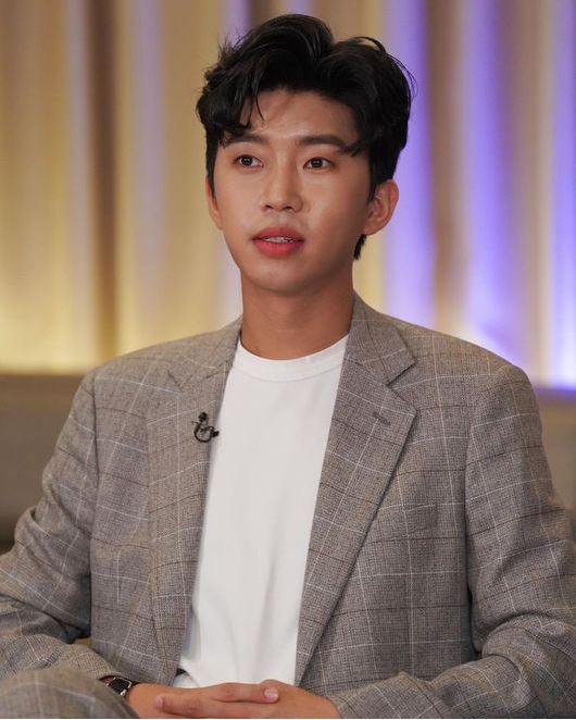 ‘미스터 트롯: 더 무비’ 제작보고회에서 체크 패턴의 슈트 소화