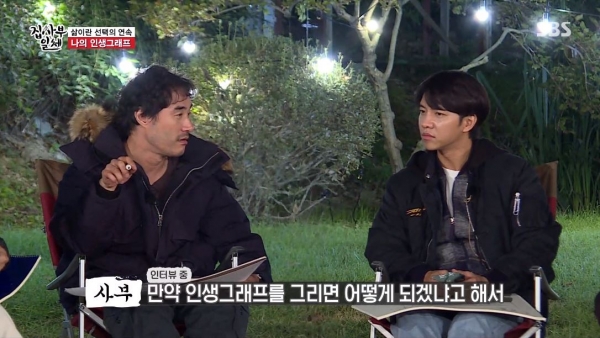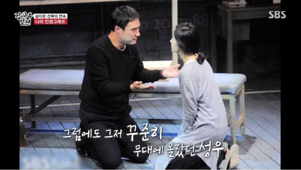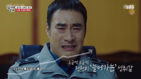 한편 멤버들의 그래프를 보던 배성우는 “진짜 0.5초 만에 그렸다”라며 단순한 상승곡선을 공개했다. 남들보다 6년 늦게 서울예대 연극과에 입학했다는 그는 “우리 반에서 내가 제일 못하는 거다. 감이 안 잡혔다”라고 말문을 열었다.