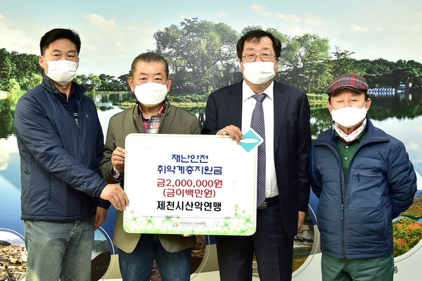 [금강일보 정봉길 기자] 제천시산악연맹(회장 권영배)은 지난 27일 제천시청 시장실을 방문해 재난안전취약계층 지원금 200만 원을 기탁했다.