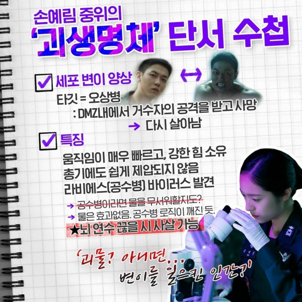 여기에 DMZ를 지키는 특전사 예비역이자 현재는 DMZ 기념관 계약직 해설사를 하고 있으며 가정을 꾸려 가족과 마을에서 살아가고 있는 김다정(문정희)이라는 역할을 더하여 그를 통해 군대 내뿐만 아니라 군대 밖, 마을 이야기도 다룬다.