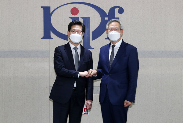양승조 지사는 23일 세종시에 위치한 한국조세재정연구원(KIPF)을 방문해 김유찬 원장과 면담을 갖고 가로림만 해양정원 조성 필요성을 설명하며 협조를 요청했다.