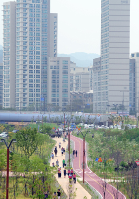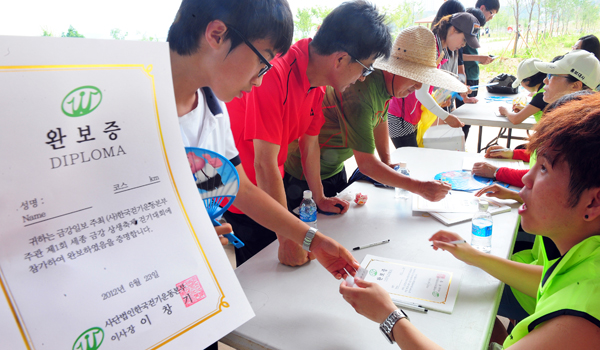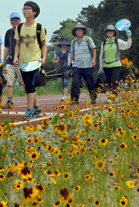 세종특별자치시의 역사적인 출범을 앞두고 금강일보와 금강유역환경청 주최로 ‘제1회 세종·금강 상생축제’가 23일 세종시 첫마을앞 한두리대교와 세종보, 합강정 일원에서 열린 가운데 가족단위 많은 참가자들이 금강둔치를 둘러보며 걷기대회를 하고 있다.