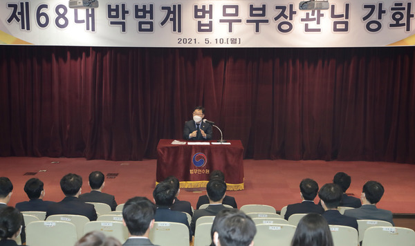 [금강일보 최일 기자] 박범계 법무부 장관은 지난 10일 법무연수원 용인분원에서 진행된 신임 검사 교육에 참석, “국민의 눈높이에 맞게, 국민이 생각하는 정의와 내가 생각하는 정의가 다르지 않도록 해야 한다”고 당부했다. 법무부 제공