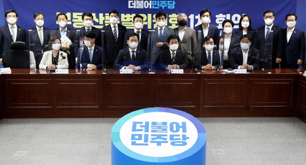 [금강일보 최일 기자] 더불어민주당 조승래 의원(대전 유성갑, 뒷줄 오른쪽에서 다섯 번째)은 지난 12일 국회에서 열린 당 부동산특별위원회(위원장 김진표) 1차 회의에 참석했다. 부동산특위는 집값 상승에 따른 세금 조정 문제 등 부동산정책 전반을 논의할 예정이다. 조승래 의원실 제공