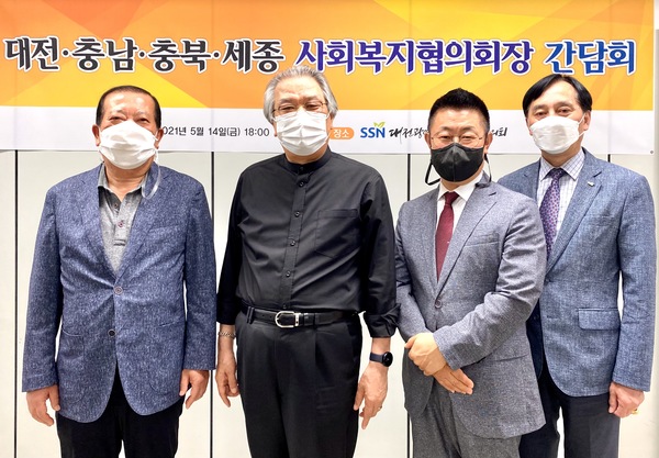[금강일보 최일 기자] 충청권 4개 시·도 사회복지협의회장 간담회가 지난 14일 대전사회복지협의회에서 열려 지역 사회복지분야 현안에 관해 논의하고 상호협력 방안을 모색했다. 왼쪽부터 충남 박윤근, 대전 최주환, 세종 김부유, 충북 김영석 회장. 대전사회복지협의회 제공