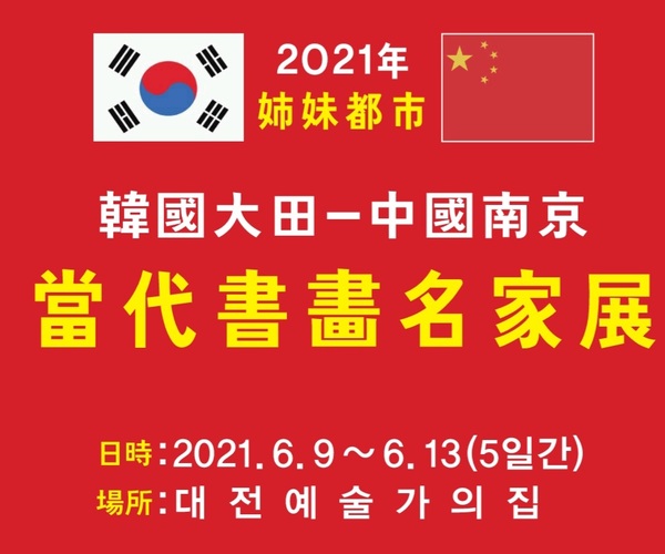 [금강일보 최일 기자] 대전시와 자매도시인 중국 난징(南京)시 간의 문화예술 교류의 장인 ‘2021년 당대서화명가전(當代書畫名家展)’이 내달 9일부터 13일까지 대전예술가의집에서 펼쳐진다.