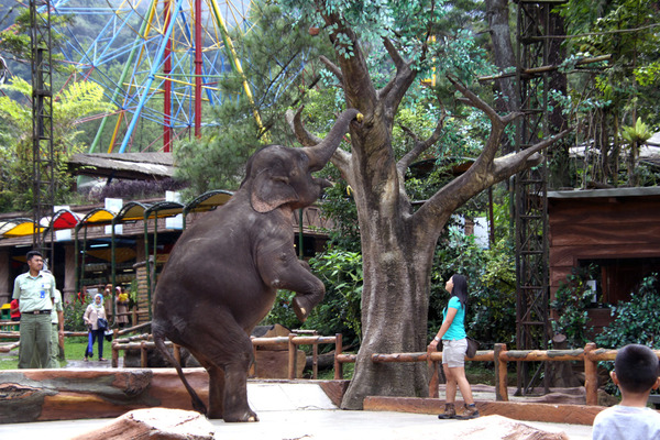 야생동물들이 있는 사파리를 지나면 여러 동물 쇼가 시간대로 열리고, 놀이기구와 동물을 직접 타거나 만져볼 수 있는 유원지가 있다. 방사된 동물들을 둘러보는 것이 두렵거나 곧장 유원지로 가려면, 사파리 입구에서 곧장 오른편으로 난 길을 올라가면 된다. 유원지로 가는 오른쪽에는 어린이 동물원(BABY ZOO)이 있는데, 이곳에서는 조랑말을 타거나 잘 사육된 호랑이. 표범들과 함께 사진을 찍을 수 있도록 했다. 그 맹수들은 사람을 해치지 않도록 길들여 두었지만, 만일의 사태에 대비하여 목에 줄을 매달아 두어서 멀리 달려들지 못하게 했다. 사실 이런 맹수들은 외형만 맹수일 뿐 이미 야성을 상실한 애완용이나 다를 바 없어 보였다. 관광객들과 기념사진을 한번 찍는데, 2만 루피아(한화 약 2000원)를 받는다.