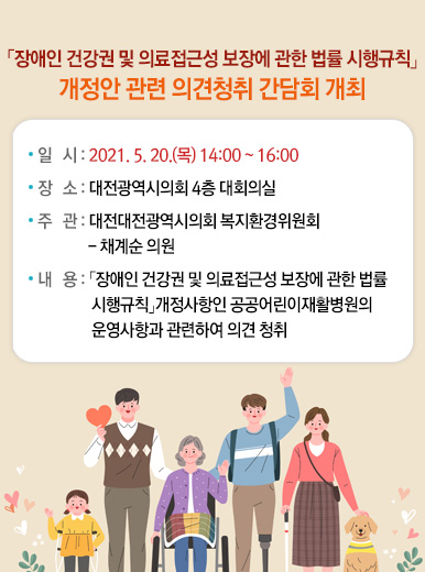 [금강일보 최일 기자] 장애인 건강권 및 의료접근성 보장에 관한 법률 시행규칙 개정사항인 공공어린이재활병원의 운영과 관련해 각계의 의견을 청취하는 자리가 마련된다.