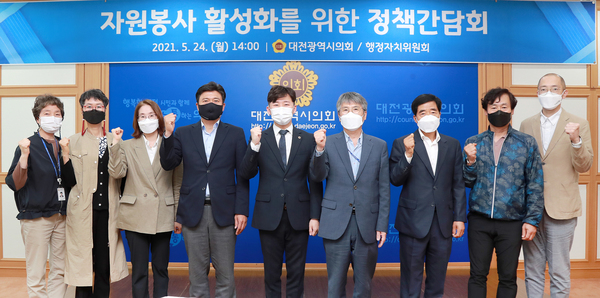 [금강일보 최일 기자] 대전시의회 우승호 의원(더불어민주당·비례, 가운데)은 지난 24일 시의회 대회의실에서 자원봉사 활성화를 위한 정책간담회를 개최했다. 대전시의회 제공