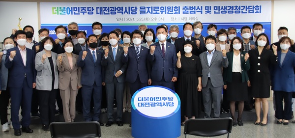 [금강일보 최일 기자] 더불어민주당 대전시당 을지로(乙을 지키는 길)위원회 출범식 및 민생경청간담회가 지난 25일 중구 용두동 시당사에서 열려 참석자들이 기념촬영을 하고 있다. 이날 행사에는 박영순 시당 위원장과 진성준 중앙당 을지로위원장, 오광영 시당 을지로위원장, 권중순 시의회 의장 등이 함께했다. 민주당 대전시당 제공
