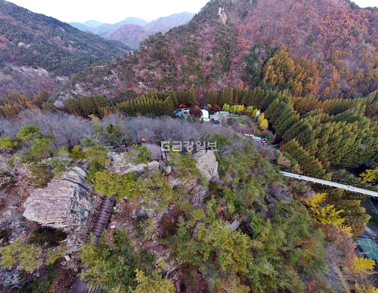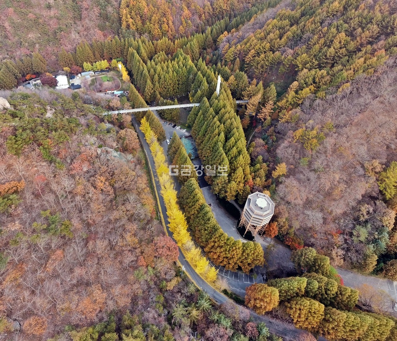 시나브로 가을과 겨울의 경계에 섰다. 절기상 입동인 7일 찾은 장태산자연휴양림. 메타세쿼이아숲이 새로운 계절을 준비하고 있다. 최절정 초록의 여름도 좋지만 늦가을과 초겨울 사이 빨간 계절의 숲도 인상적이다. 아직은 초록색이 진하지만 머지않아 빨갛게 물든 이국적인 풍경을 보여줄 태세다. 만추의 숲, 출렁다리 건너 숲속어드벤처 스카이웨이를 걸어보시라. 동화 속 세계의 문이 열릴 것이다.