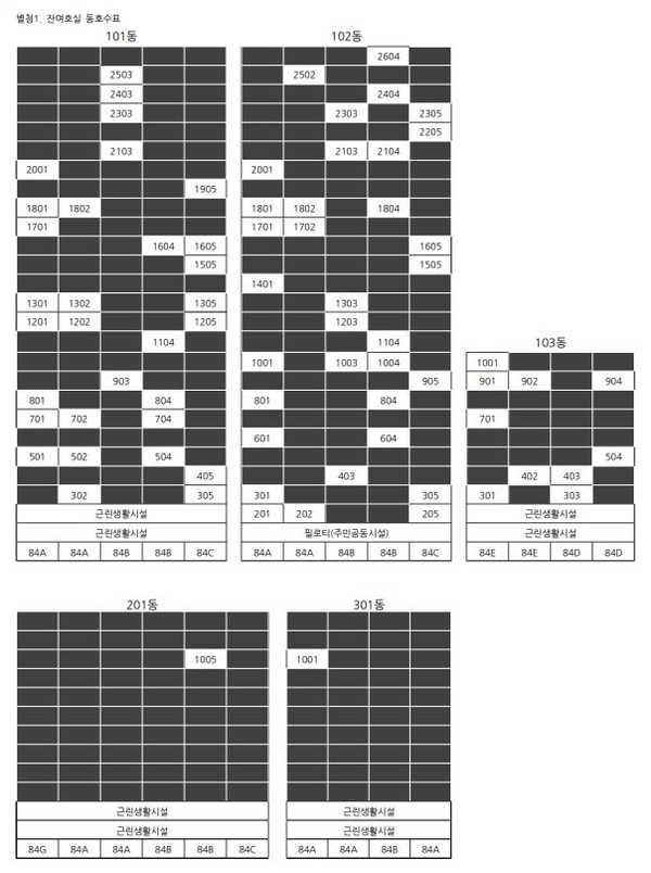 입주자 선정과 동·호수는 컴퓨터의 입주자 선정 프로그램을 통해 무작위로 결정된다. 타입 별 잔여호실의 500%까지 추첨으로 예비당첨자를 선정한다.