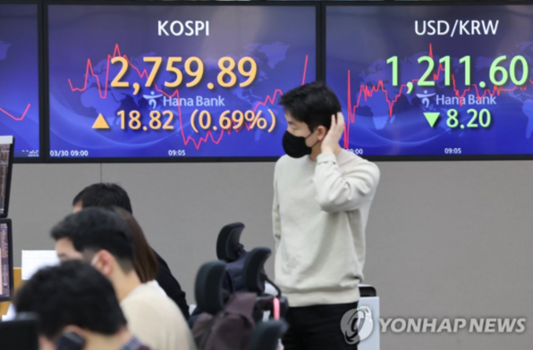 이날 코스피는 전 거래일보다 10.91포인트(0.40%) 오른 2,757.65에 거래를 마쳤다.