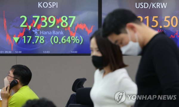 이날 코스피는 전 거래일보다 17.80포인트(0.65%) 내린 2,739.85에 거래를 마쳤다.