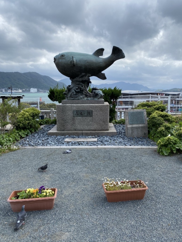 시모노세키는 전국 복어(鰒魚: ふぐ) 어획량의 80%가 넘을 만큼 유명하여 복어를 시(市)의 심볼로 삼았을 뿐만 아니라, 가라토시장은 물론 하치만구 신사(龜山八幡宮)에 세계 최대의 복어 상을 세웠다. 간몬해협의 해저터널 입구에도 커다란 복어를 그리는 등 시내 곳곳에 복어 조형물이 많다.(복어에 대하여는 2022. 5. 25. 시모노세키의 개요 참조)