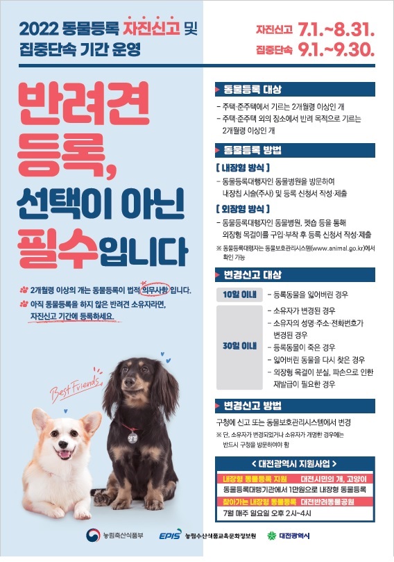 대전시가 오는 8월까지를 반려동물등록 자진신고 기간으로 정했다.