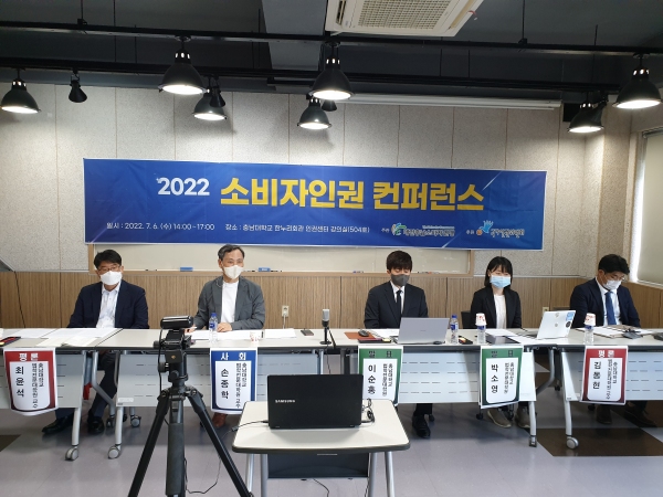 대전충남소비자연맹과 충남대 법률센터 관계자들이 지난 6일 열린 소비자인권 콘퍼런스에 참여하고 있다. 이번 콘퍼런스는 소비자 인권을 주제로 청년의 생각을 발표하고 이에 대한 전문가 평론을 실시해 소비자 인권에 대한 청년의 목소리를 듣기 위해 마련됐다. 대전충남소비자연맹 제공