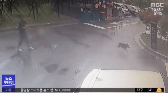 이후 공격을 당한 아이가 바닥에 축 늘어져 있을 때 택배기사가 나타났고, 기사는 짐 싣는 카트로 개를 쫓아냈다.
