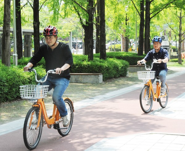 기존의 타슈와도, 시범운영됐던 타슈와도 외관이 상당히 달라졌습니다. 기존의 타슈가 파란색이었던 반면 타슈 시즌2는 주황색입니다. 무게도 기존 타슈 시즌1 무게는 19㎏인데 시즌2는 1㎏ 줄어든 18㎏입니다. 가벼워진 만큼 속도감을 즐길 수 있죠.