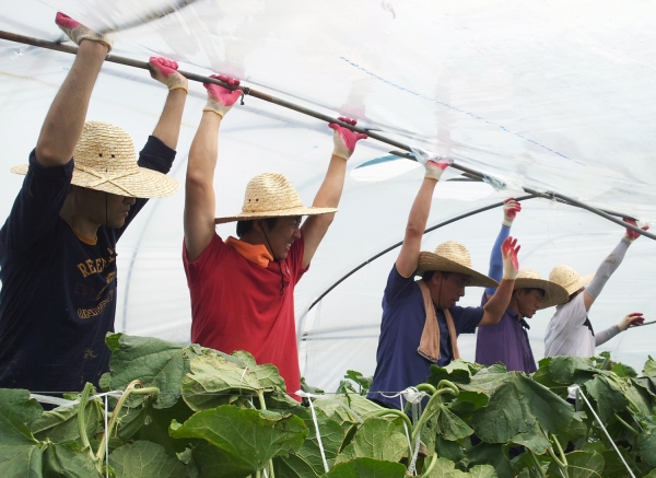 도 직원들은 태풍에 피해를 입은 메론 재배단지의 피복된 비닐 제거 작업을 실시했다.