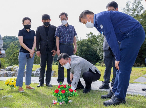 이장우 대전시장이 명절 연휴 첫날인 지난 9일 대전추모공원을 찾아 시설을 둘러보고 점검하고 있다. 이어 연휴에도 근무 중인 직원에게 직접 감사한 마음을 전했다. 이후 스마트도시통합센터와 시청 남문 임시선별검사소를 찾아 운영 상황을 점검하고 근무자를 격려했다.