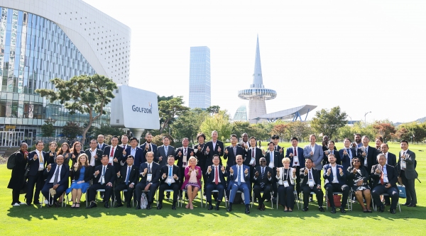 이장우 대전시장(앞줄 왼쪽 여덟 번째)과 2022 대전 세계지방정부연합(UCLG) 총회에 참가한 자매·우호도시 관계자가 11일 대전컨벤션센터 인근에서 오찬 회동을 가진 뒤 기념촬영을 하고 있다.