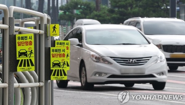 지난 12일부터 ‘교차로 우회전 일시 정지’ 위반 차량 단속이 본격 시작됐다.