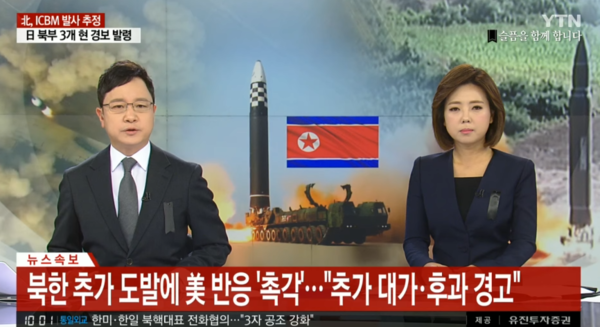 [속보] 미국, 북한 추가 도발에 촉각 곤두 세워 "추가 대가· 후과 경고" [속보] 대륙간탄도미사일 가능성 제기... 미국 강력 규탄 입장 예상 저작권자 © 금강일보 무단전재 및 재배포 금지 김미영 기자 kmy@ggilbo.com 다른기사 보기 SNS 기사보내기 이메일(으)로 기사보내기 다른 공유 찾기 기사스크랩하기 댓글삭제 삭제한 댓글은 다시 복구할 수 없습니다. 그래도 삭제하시겠습니까? 비밀번호 닫기 기사 댓글 0 댓글 접기 댓글입력 권한이 없습니다. 댓글 내용입력 비회원 로그인 이름 비밀번호 댓글 내용입력 댓글쓰기 계정을 선택하시면 로그인·계정인증을 통해 댓글을 남기실 수 있습니다. 회원 로그인 비회원 글쓰기 이름 비밀번호 자동등록방지 로그인 옵션 창닫기 추천기사 [오늘의 금값시세] 11월 26일 금시세(순금·24k)는? 노타 주가, 급등... 호재는? [오늘의 운세] 26일 수요일 나의 운세는?