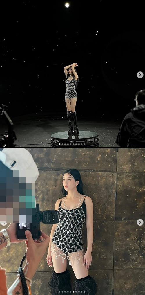 공개된 사진 속에는 작은 무대 위에 서있는 그의 모습이 담겨 있다. 특히 완벽한 이목구비와 길쭉한 다리 길이로 권은비는 독보적인 비율을 자랑했다.