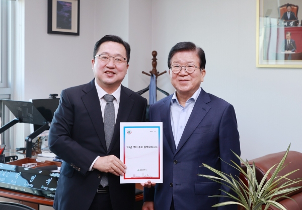 16일 국회를 방문한 이 시장은 주호영 국민의힘 원내대표를 만나 “지역 내 균형발전, 새로운 성장 동력 확보 등 시가 일류도시로 도약하기 위해 지역 현사업의 국비 확보가 절실하다. 시 핵심사업에 대한 예산 심사가 원활히 진행돼 국비가 최대한 반영될 수 있도록 관심과 지원이 필요하다”라고 요청했다. 특히 90억 원 감액된 방위사업청 대전 이전 예산의 원안(210억 원) 회복이 필요하단 점도 분명히 했다.