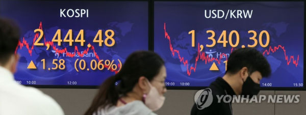 이날 코스피는 전 거래일보다 1.58포인트(0.06%) 오른 2,444.48에 장을 마쳤다.