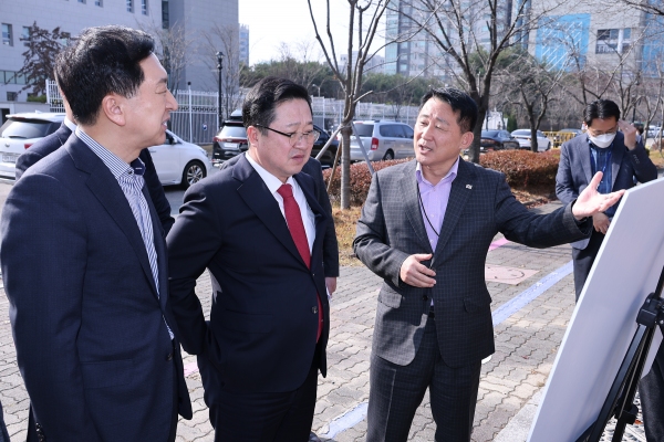 국회 국방위원회 소속 김기현 전 국민의힘 원내대표가 23일 방위사업청 신축 예정부지인 정부대전청사 유휴부지에 방문해 방사청 대전 이전 사업에 적극 협조하겠다고 약속했다 .김 전 원내대표는 이장우 대전시장과 서철모 서구청장, 이은권 국민의힘 대전시당 위원장 등과 함께 현장을 방문해 방사청 지방이전추진 계획 등에 대한 설명을 들었다.