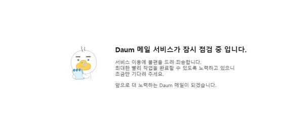 24일 다음메일은 오후 2시경 "Daum 메일 서비스가 잠시 점검 중"이라고 밝혔다. 현재 오후 3시 20분 기준 다음메일은 정상적으로 접속이 가능하다.