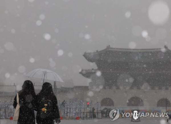 예상 적설량은 수도권·강원내륙·강원산지·충남내륙·충북중부·충북북부에서 3∼8㎝, 충남서해안·충북남부·경북북부내륙·서해5도·울릉도·독도 1∼5㎝, 전북·전남북부·경남서부내륙 1∼3㎝, 강원북부동해안·경북남서내륙 1㎝ 내외다.