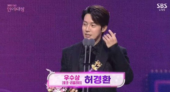 허경환은 17일 오후 서울 마포구 상암동 SBS 프리즘타워에서 열린 ‘2022 SBS 연예대상’에서 토크, 리얼리티 부문 우수상을 받았다.