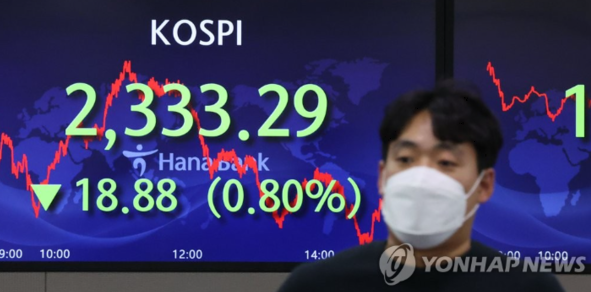 이날 코스피는 전장보다 18.88포인트(0.80%) 내린 2,333.29에 장을 종료했다.