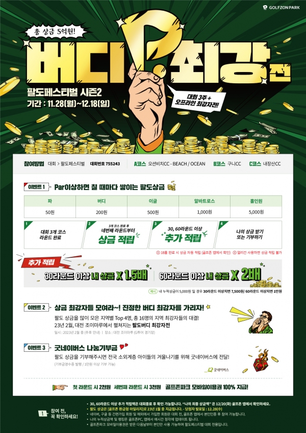 이번 사업은 골프존의 기부금 1억 원과 지난해 12월 팔도페스티벌에 참여한 골프존 회원들의 자발적 기부금액 200만 원으로 진행된다. 골프존은 밀키트 2만 개를 매주 4인 분량의 밀키트를 대상 아동에게 배송, 급식 지원이 되지 않는 주말 동안 결식 예방을 위한 특식 구성 등 아동들의 영양 불균형 해소와 건강한 신체 발달을 지원할 예정이다.